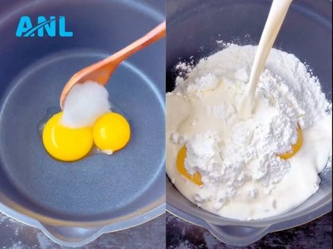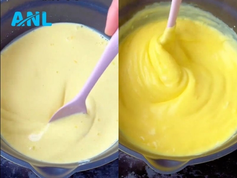 Đun 500ml sữa tươi không đường đến khi ấm khoảng 60–70°C, không để sôi. Từ từ đổ sữa ấm vào hỗn hợp trứng, vừa đổ vừa khuấy nhẹ để tránh trứng bị chín. Cho hỗn hợp lên bếp, đun lửa nhỏ và khuấy liên tục đến khi đặc sánh lại như kem.