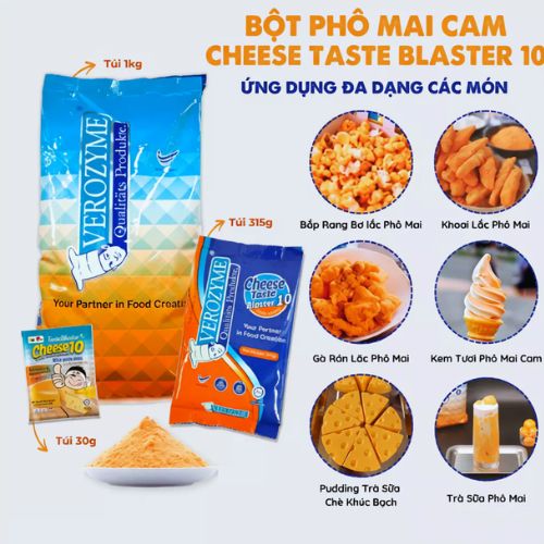 - Tỉ lệ: 10% (1kg thành phẩm sử dụng 100gr bột phô mai cam)