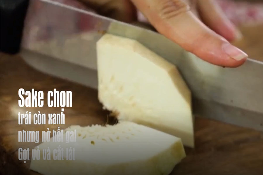 Bước 1: Đầu tiên, bạn gọt vỏ và cắt sake thành miếng vừa ăn.