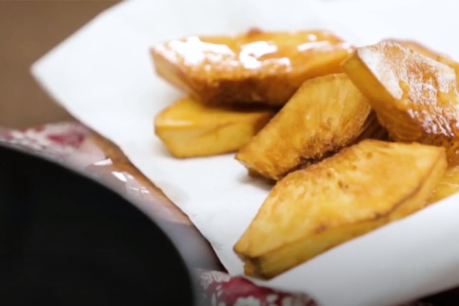 * Lưu ý: Các bạn chiên trên lửa vừa và không cho quá nhiều để sake chín đều.