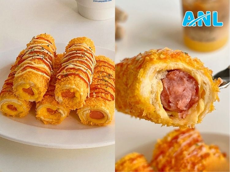 3. Xúc xích cuộn bánh mì gối lắc phô mai
