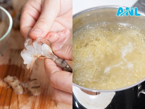 Tôm bóc vỏ, rút chỉ lưng, giữ lại phần gạch tôm để xào cùng sốt giúp món ăn thêm béo và đậm vị. Mì ý luộc trong nước sôi có thêm một ít muối và dầu olive khoảng 8-10 phút cho sợi mì vừa chín tới, sau đó vớt ra xả nhẹ với nước lạnh để không bị dính.
