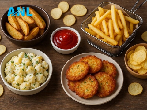 Khoai tây là nguyên liệu quen thuộc, mang lại nhiều lợi ích dinh dưỡng nên rất phù hợp để chế biến thành món ăn vặt bằng khoai tây. Loại củ này giàu carbohydrate phức hợp, chất xơ hỗ trợ tiêu hóa hiệu quả, cung cấp vitamin C, B6, kali và chất chống oxy hóa tự nhiên.