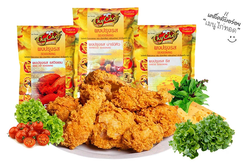 Bột gia vị Thái Lan Thychef dùng để rắc hoặc lắc lên bề mặt các sản phẩm như: gà rán, khoai lang lắc, khoai tây lốc xoáy,…