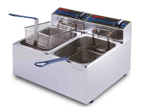 Bếp chiên nhúng là một trong những dòng máy chế biến thực phẩm do Alo Nguyên liệu nhập khẩu và cung cấp. Sản phẩm được biết đến là một thiết bị hỗ trợ đắc lực cho mọi đầu bếp tại gia đình hoặc các nhà hàng lớn để chế biến các món ăn chiên rán như là: khoai tây lốc xoáy, khoai tây chiên, khoai lang lắc, gà rán, xúc xích rán, nem chua rán, bò viên, cá viên chiên... Bếp chiên nhúng được làm bằng inox sáng bóng có khả năng chống gỉ, nhẹ nhàng, nhỏ gọn, mỗi ngăn có thể chứa tối thiểu 5,5 lít dầu. Giúp cho người sử dụng chế biến các món ăn được nhanh chóng, tiện dụng hơn và tiết kiệm được thời gian.